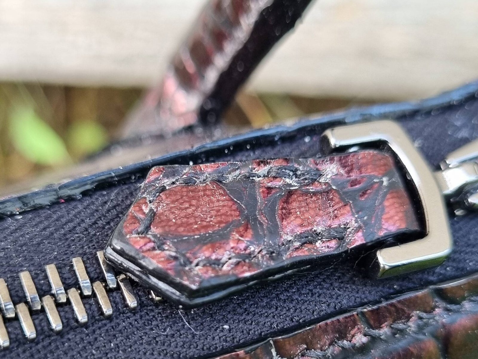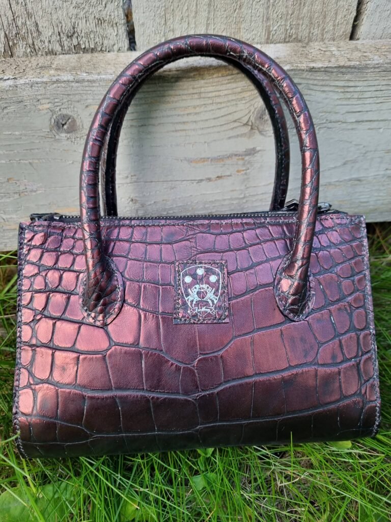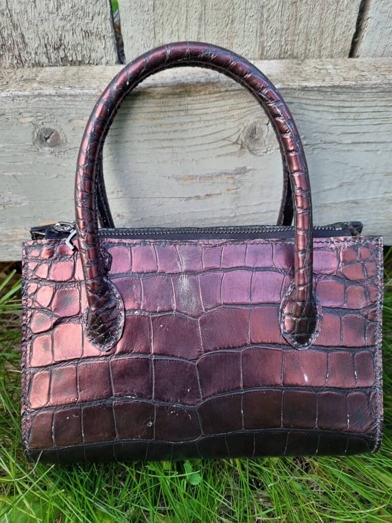 Over time, your handbag may develop patina, particularly on the handles, and this is something to be celebrated. Wear and age on leather provide a unique charm that cannot be replicated and this will complement the already charactered texture of the bag. With a mild patina and the timeless look of alligator leather, you’re sure to find a pleasurable experience with this handbag wherever you may take it!